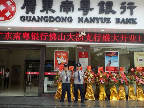 2015年10月 我公司与广东南粤银行大沥支行支行合作,共派驻保安员6名。