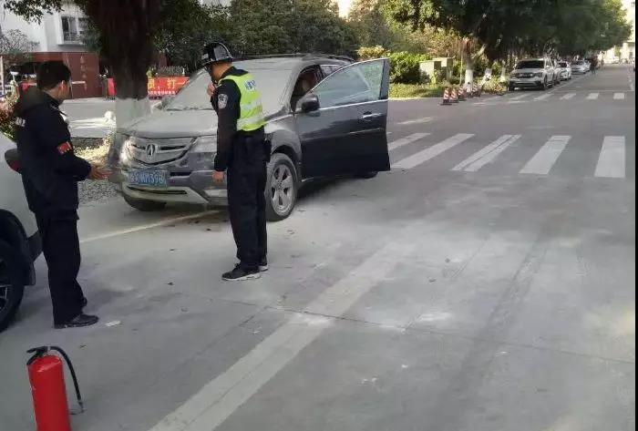 2018年12月18日早上8点30分,乐从中学北门外公路边上一辆黑色讴歌SUV社会车辆突然发动机失火。