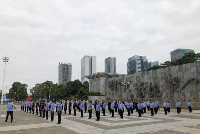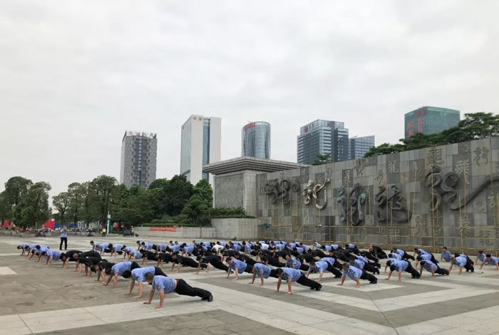 2019年4月8日,98彩网特卫保安公司在大沥镇九龙公园集合,一百余名精神焕发、着装整齐的保安员在公园严正以待,随着黄岐派出所邝指导员的一声令下,宣布体能测试考核大赛正式开始。负责此次考核的林警官、潘警官分批次对此次通过资格审查的一百余名保安员进行了细致严谨的考核。此次体能测试考核过程中,所有保安员自觉遵守考场纪律,认真应考,考试全程井然有序,考务工作圆满顺利完成。