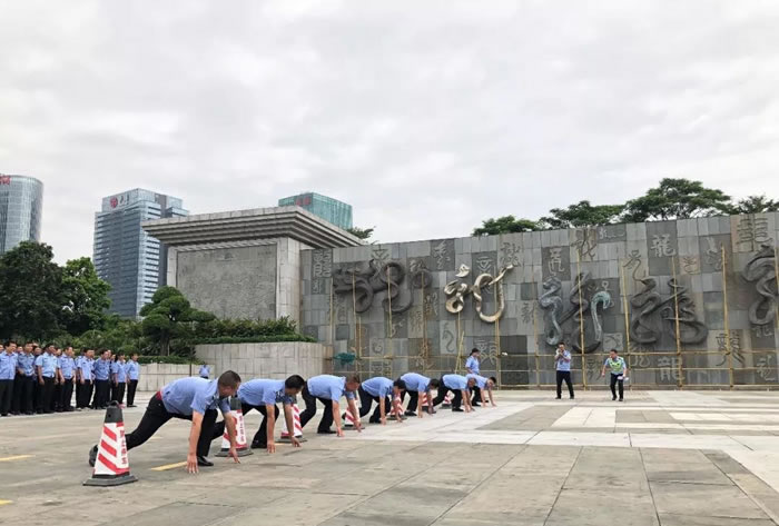 此次考试共分为体能测试和业务理论考试两项,6月14日先行考核的为体能测试,其中体能测试包括队列、100米跑、4x10米往返跑、俯卧撑四项,主要考核保安员们基本动作要领是否掌握,体能是否达标等。