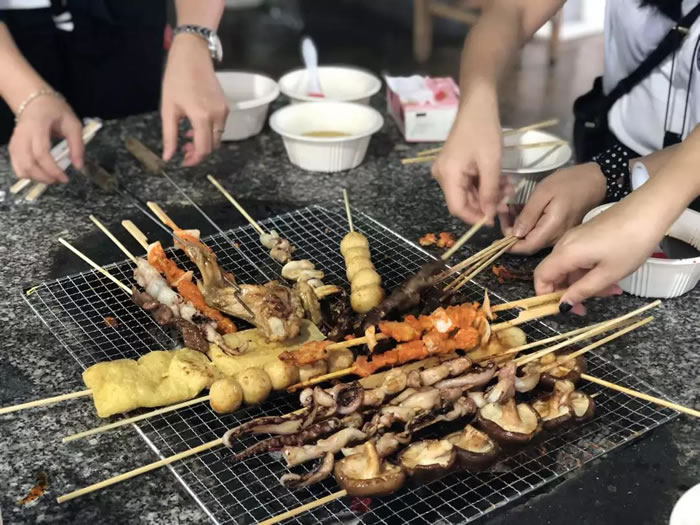烤肉串、烤鸡翅、烤蔬菜、烤香肠。。。吃货们也被弥漫周围的烧烤香味吸引得口水直流。大伙儿边喝饮料、啤酒边撸串,欢声笑语萦绕在半空,同事间的情谊随着缕缕炊烟逐渐升华。