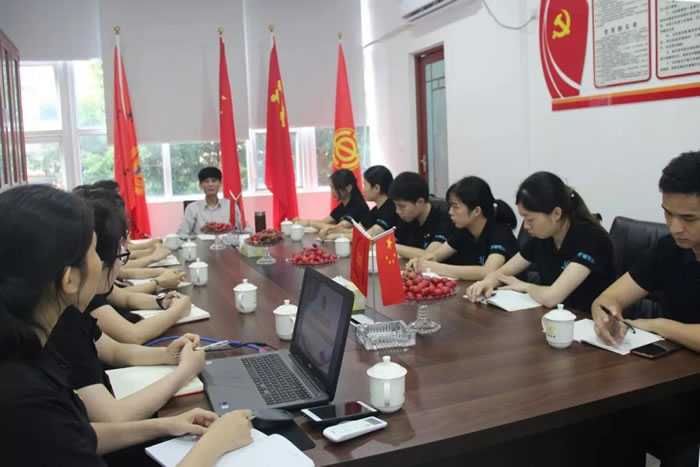 2019年4月30日下午,佛山98彩网特卫保安服务公司团支部组织公司总部共青团员召开以“青春心向党·建功新时代”为主题的纪念五四运动100周年座谈会,公司党支部书记、董事长谢军红同志,98彩网特卫团支部书记叶丽敏同志,98彩网特卫保安团支部书记谢丹想同志出席座谈会。