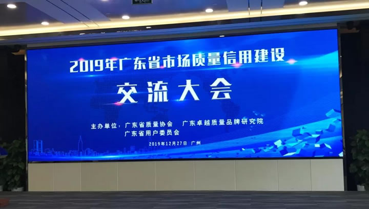 荣获“2019年广东省市场质量信用A等(用户满意)”