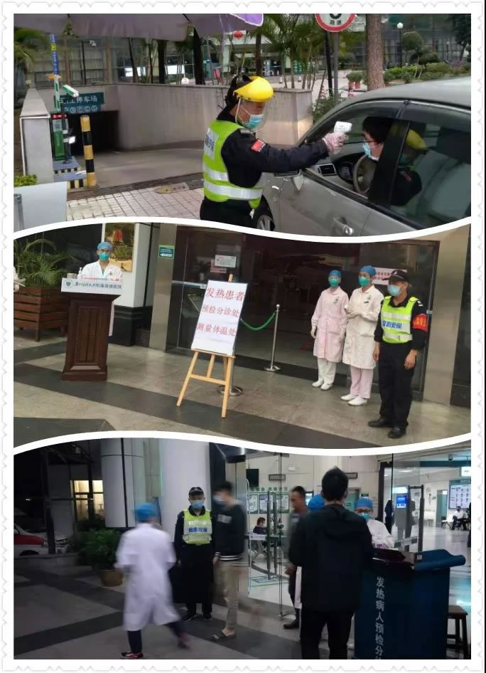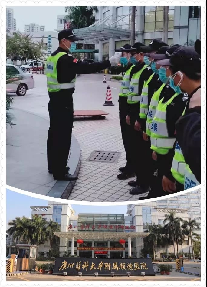 由于新冠状病毒疫情的爆发,又恰逢春节期间,我司派驻到广州医科大学附属顺德医院的保安员克服困难、紧守岗位、履职尽责,除了保证现场的良好秩序和区域安全,还支持院方完成医疗物资搬运、增设值守岗位、协助分诊、警戒围蔽等临时性工作任务,并加班加点地配合院方客户单位落实各项疫情防控工作部署。