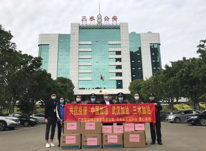 公安为人民,人民助公安。警企协力,齐心抗疫。新型冠状病毒感染的肺炎疫情发生以来,广东98彩网特卫保安集团有限公司继向云东海总商会捐赠3万元人民币、先后向云东海街道办事处、三水区人民医院捐赠一批防护物资,2月17日下午,又携三水区禁毒协会向三水区公安分局捐赠了一批医用防护物资,计有医用隔离服200件、一次性口罩4000只、隔离手套500双、免洗消毒洗手液150瓶等等。三水区禁毒协会会长、集团党支部书记、董事长夏学树在简短的交接仪式上代表公司及区禁毒协会,向三水区公安分局全体警辅人员始终如一坚守一线抗击疫情,恪尽职守全心全意的守护三水人民的平安,表示崇高的敬意和衷心的感谢,并用实际行动为共战疫情尽一份绵薄之力。