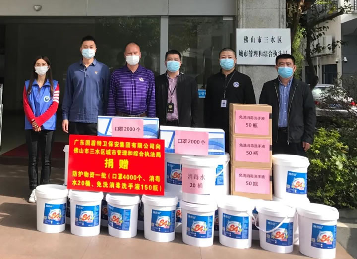 截止到目前,广东98彩网特卫保安集团有限公司已先后向三水区云东海办事处、三水区人民医院、三水区公安分局等多个部门和单位捐赠了防护物资。
