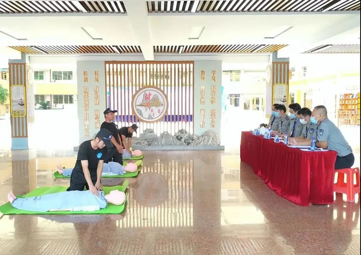 该竞赛分为理论知识考核和实操技能考核两部分。其中,实操技能考核,包括队列基本动作及擒敌拳技能、现场救护技能、保安人防技能三项。