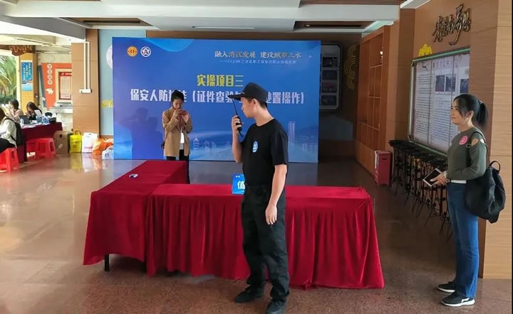 保安人防技能则要求参赛选手对现场模拟人群中的1名嫌疑人进行识别、证件查验和查问、上报情况等现场处置能力。