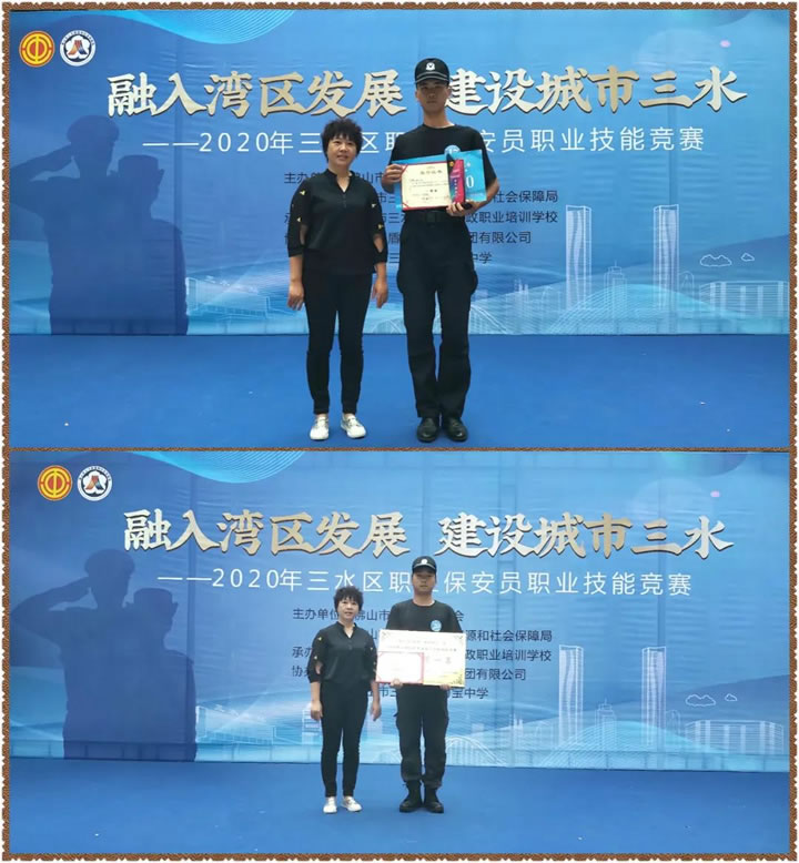 10月18日,三水区举行 “融入湾区发展 建设城市三水” — 2020年三水区职工保安员职业技能竞赛。该竞赛由三水区总工会、三水区人力资源和社会保障局主办,共有31名保安员选手参赛,我司代表参赛保安员杨海潮、李其昆、龙大标夺得团体奖第一名。