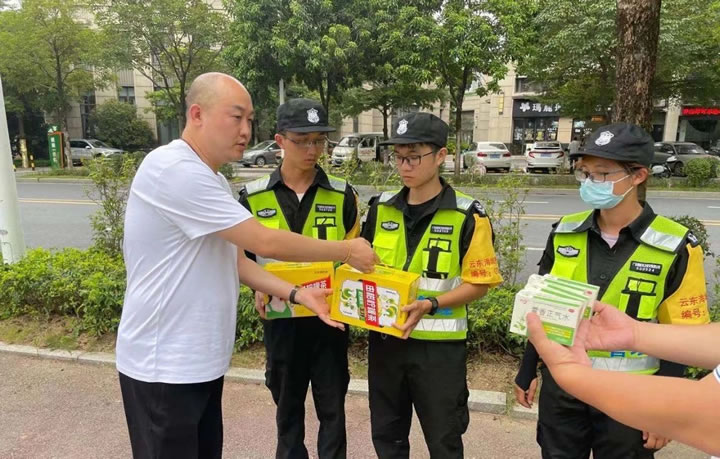公司客户单位执勤点多、线长、面广,人员分散,为了搞好送清凉慰问活动,让每位保安员亲身感受公司关心关爱,集团公司党支部副书记、工会主席、董事长助理郑红战同志与各保安部经理加强沟通配合、统筹安排,确保慰问活动有序进行。为把好事办实、实事办好,此次“夏日送清凉”活动,把送清凉物资与送健康结合起来,发放防暑药品,讲解预防常识,提醒大家做好常态化的疫情防控。把送关爱与激发保安员爱岗敬业结合起来,引导大家积极做好客户单位执勤巡查、门卫扫码登记、消防安全检查、应急处置等工作,进一步激发了保安员的责任感和使命感。