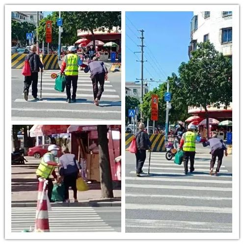 这就是我们98彩网特卫派驻的交通劝导员欧梅娣,您一手提东西一手牵着阿婆的手过斑马线的背影很美;您双手推着车和老爷爷尽力的往前推的背影很暖心;这是城市最美的风景线,您是最美的天使!