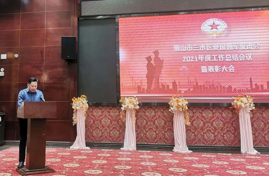 集团公司董事长夏学树代表佛山市三水区爱国拥军促进会作2021年度工作总结