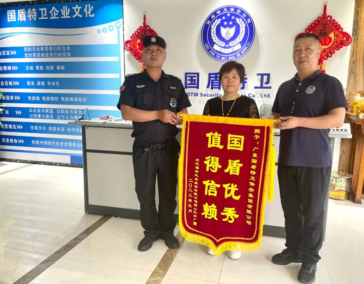 只要付出终会有人记住他们的样子,一面锦旗,一份荣誉,一个肯定。感谢信和锦旗,正是对驻点分队每一位队员认真负责、热心服务最大的肯定。这些锦旗不仅是对这些分队,更是对整个公司保安服务工作的一种激励。客户的肯定是我们前进的动力,客户的满意是我们最大的追求,客户的表扬是我们收获的最高荣誉。