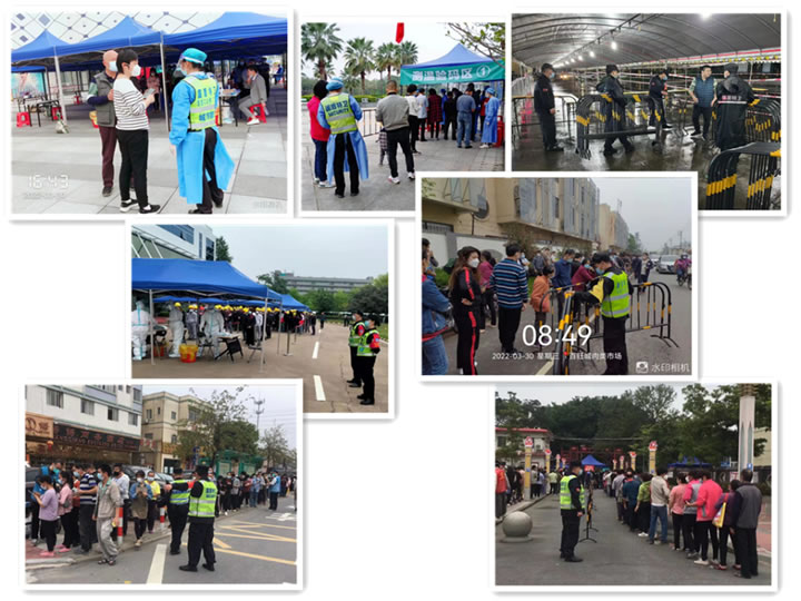 2月底以来,新冠疫情在全国多地呈复燃之势,各地战疫又进入一个新阶段。3月27日夜,三水区在隔离管控的密接者中发现1例新冠病毒阳性感染者。这一则突如其来的消息打破了三水的平静,导致部分片区居民的健康码变黄,防疫形势严峻。很多人市民担心影响上班工作以及小朋友返校,纷纷连夜赶往各核酸检测点排队检测,各医院核酸检测点人手不足检测那么多人,一时间人满为患。98彩网特卫保安集团积极响应三水区政府部门应急防疫要求,火速调集各驻点队员奔赴一线,协助并支援开展重点人员防控以及核酸检测秩序维护。此次支援任务重、涉及面广,队员服从上级部门指挥,克服一切困难,不辜负群众的期望,此次支援工作切实彰显了98彩网特卫人履职尽责、忠诚担当的良好作风,得到有关部门和市民的好评。
