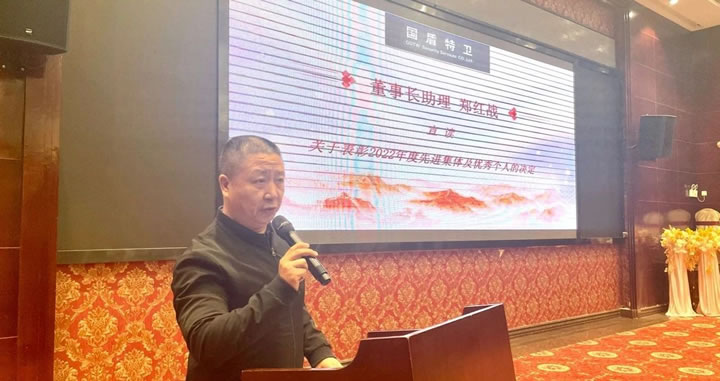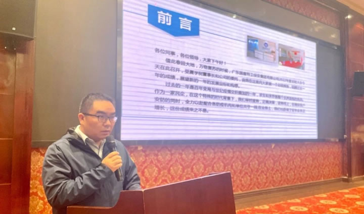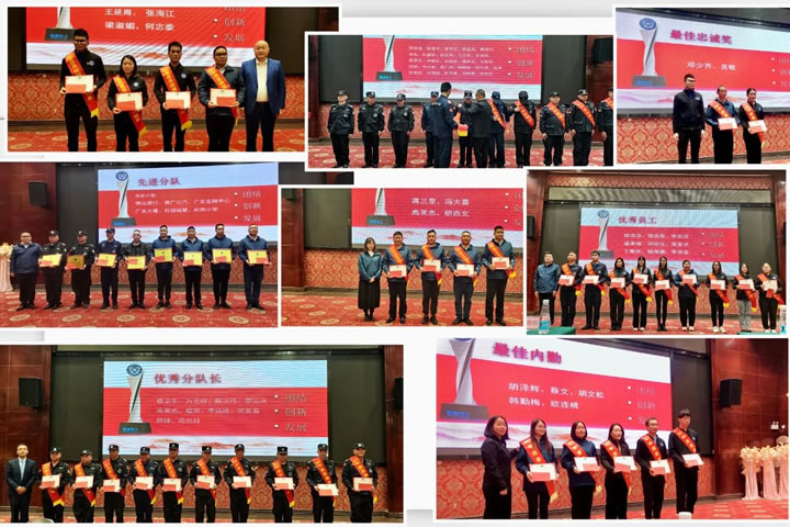 2月25日下午,广东98彩网特卫保安集团有限公司召开2022年度工作总结表彰大会,集团公司各部门员工、各区域大队长以及受表彰的先进分队代表和优秀保安员等140多人参加了此次大会。